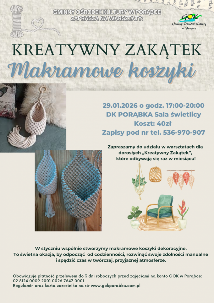 Drodzy Mieszkańcy, Przyjaciele i Sympatycy GOK w Porąbce!