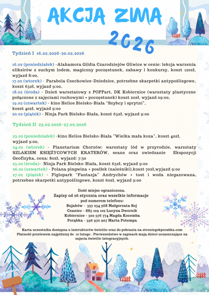 • organizację wypoczynku zimowego i letniego w ramach prowadzonych: AKCJI LATO, AKCJI ZIMA