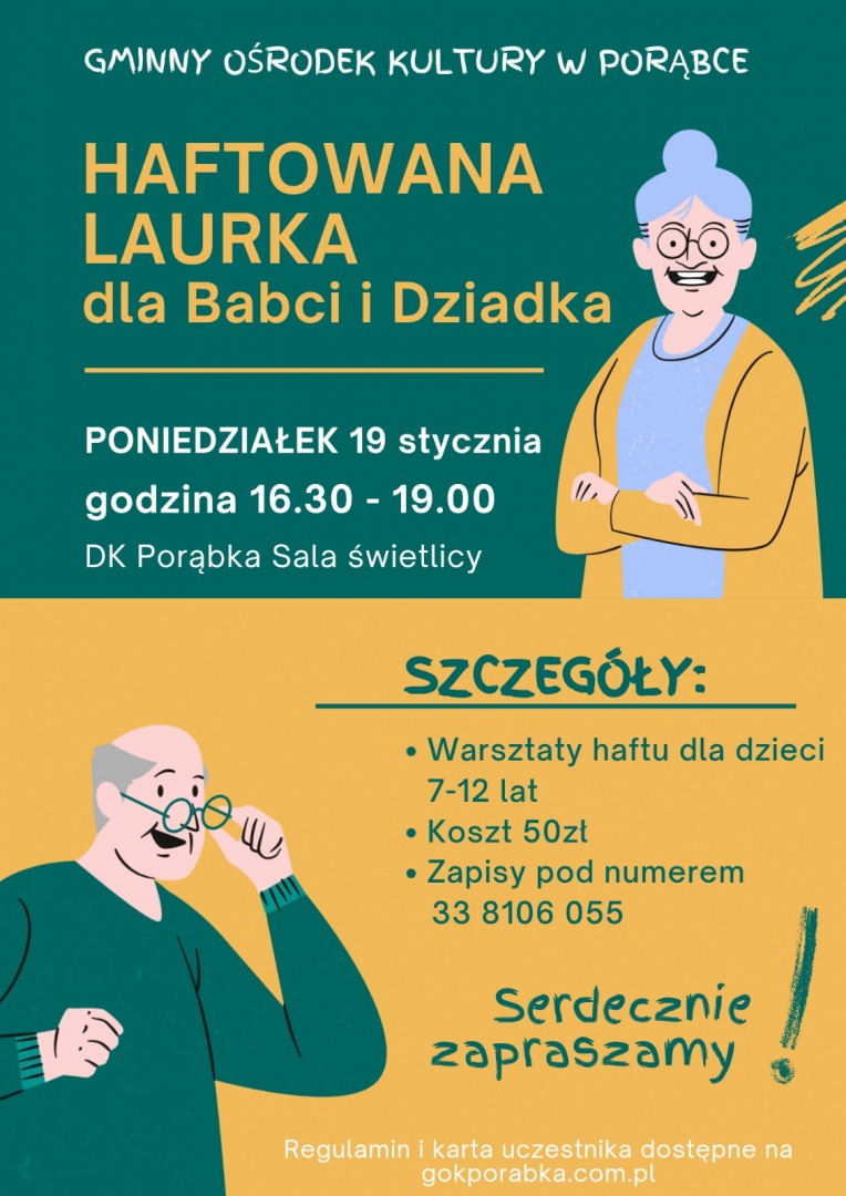 Gminny Ośrodek Kultury w Porąbce zaprasza dzieci w wieku 7–12 lat na kreatywne warsztaty haftu.