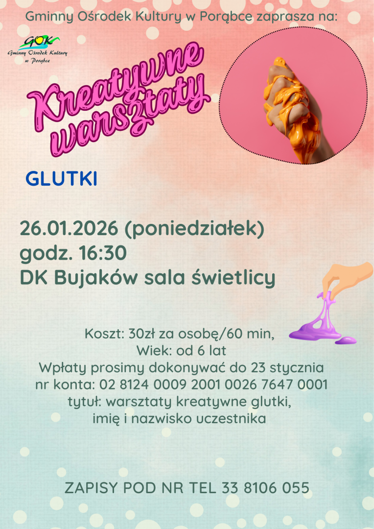 Gminny Ośrodek Kultury w Porąbce zaprasza na Kreatywne warsztaty – Glutki.