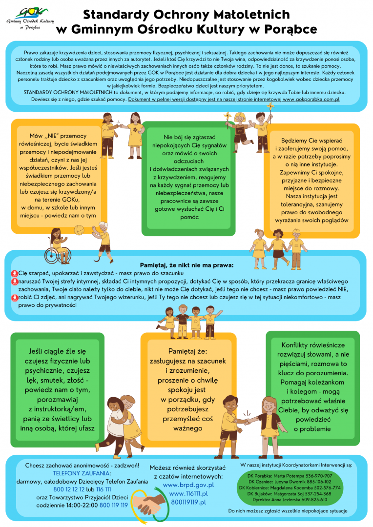 Naszym priorytetem jest bezpieczeństwo i dobro małoletnich. Standardy ochrony obejmują jasne procedury, edukację oraz współpracę z rodzicami i instytucjami w celu zapewnienia pełnej ochrony dzieci i młodzieży. Stawiamy na prewencję, reagowanie na zagrożenia i wsparcie w każdej sytuacji wymagającej interwencji. Razem budujemy środowisko pełne zaufania i troski.